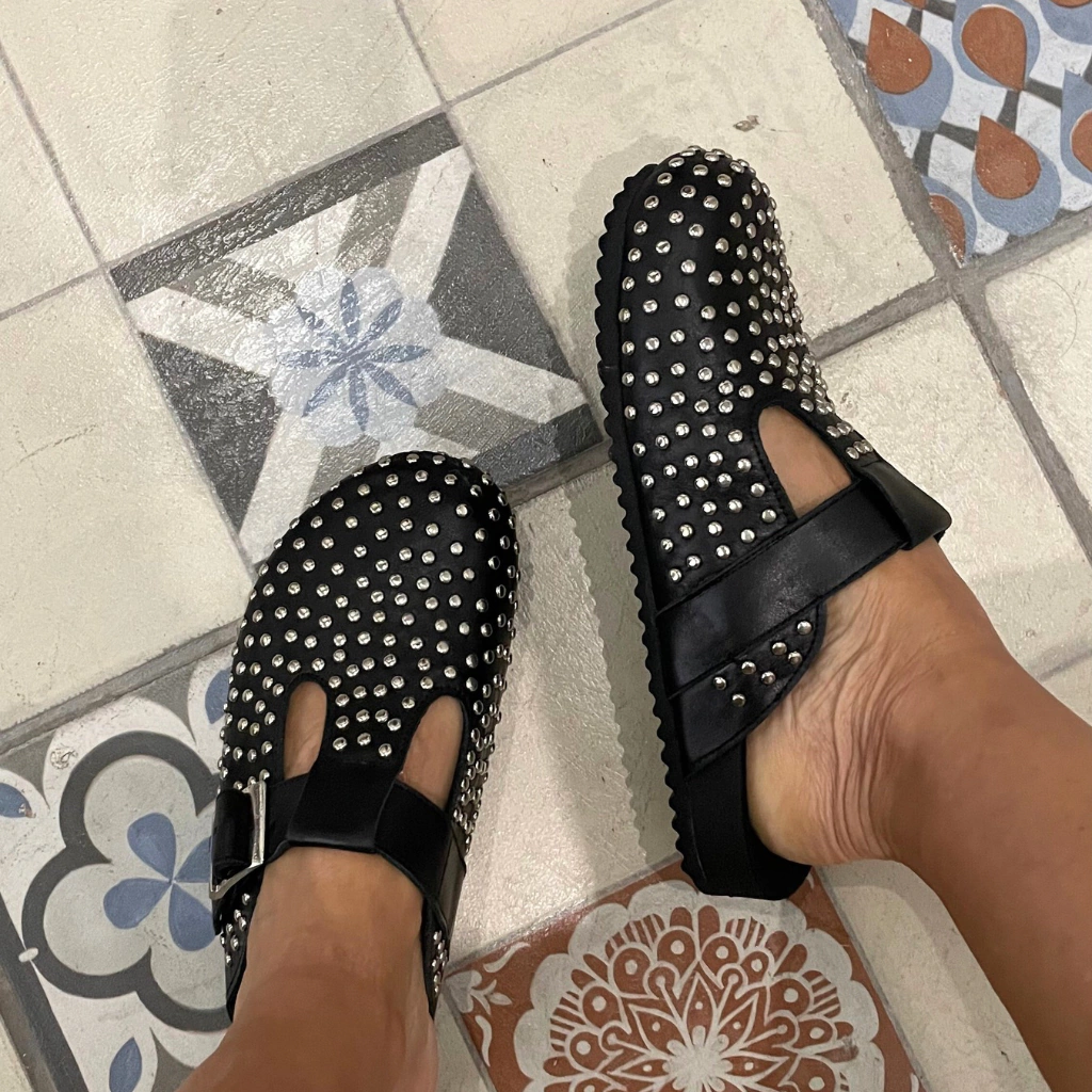 BIRKEN CUERO NEGRO CON TACHAS NIQUEL